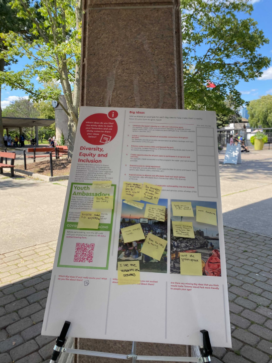 It is vital to involve communities in deciding what the engagement process looks like, said Jennifer Chan, Co-founder and CEO of the Department of Imaginary Affairs (DIA) . Last summer, the organization led a project called A Tale of Two Parks to surface stories of safe and unsafe experiences that exist at the same park. Through the project, six racialized youth were hired as Social Researchers to engage park goers, especially BIPOC communities, in two Toronto parks.